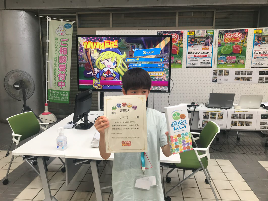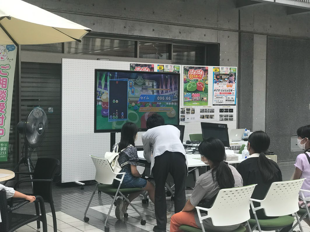 【eスポーツ体験会】では、香川県eスポーツ協会事務局の藤原克樹さんの指導のもと参加者にぷよぷよeスポーツの楽しさを伝えました。特に小学生を中心に、友達同士や親子での対戦が行われ、3連鎖クリア賞としてぷよぷよグミが贈られるなど、大いに盛り上がりました。